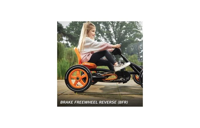 Omdat je niet altijd vooruit kan, is de Buddy Pro voorzien van Brake Freewheel Reverse (BFR). Je remt met je pedalen en zodra je stilstaat, kan je meteen achteruit verder. Een kind voelt intuïtief aan hoe dat werkt.