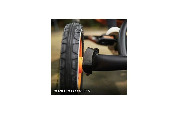Extra slijtvaste luchtbanden bieden optimaal rijcomort, de BERG skelter rijdt stil over elke ondergrond. De banden hoef je alleen af en toe of te pompen en gaan jarenlang mee.