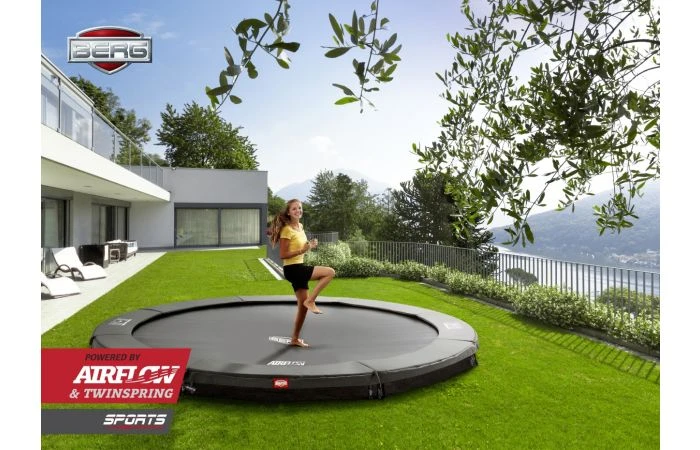 De BERG InGround Sports trampoline is echt bedoeld als een sporttoestel, om balans & lichaamscontrole te trainen en fitheid te verbeteren. De ingegraven trampoline zonder net (sports) is weggewerkt in je tuin. Door de lage opstap van 20 centimeter is de trampoline makkelijk en veilig te betreden.