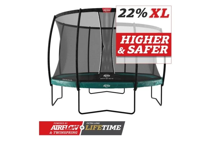 Met veel aandacht en zorg is de BERG Elite ontwikkeld. Dat heeft geresulteerd in een kwalitatief uitstekende trampoline, met de beste beschermrand op de markt, die veilig is in gebruik. De BERG Elite is slim ontworpen voor lekker lang en veilig springen. De combinatie van de TwinSpring veren met het AirFlow springdoek zorgt voor minder luchtweerstand, een groter springoppervlak en meer springplezier!