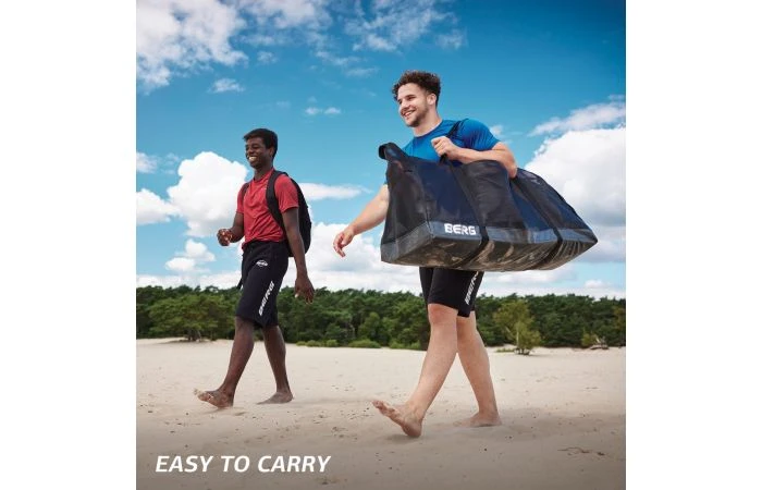 Waar je ook maar wil gaan springen, je klapt de Pro Launcher eenvoudig op en vervoert hem in de handige draagtas die je bij de trampoline krijgt.
