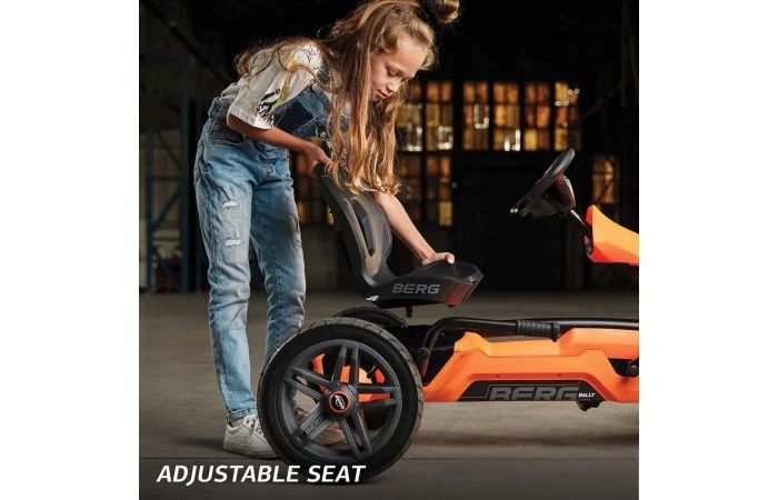 Comfort staat voorop met luchtbanden en een schommelas. Gemakkelijk van voor- naar achteruit met BFR. Een parkeerrem voor veilig stilstaan. De verstelbare stoel zorgt dat de Rally jaren met je meegroeit.