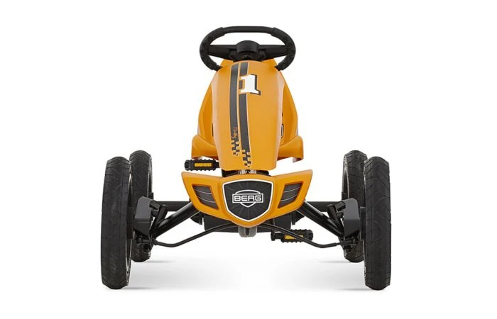 De BERG Rally heeft luchtbanden. Luchtbanden geven. minder rolweerstand dan massieve banden. Dit zorgt voor meer comfort en rijgemak. Het zorgt er ook voor dat je sneller kan rijden op een Rally.