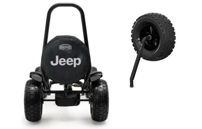 Met een BERG Jeep skelter kun je pas echt op avontuur. Maar wat als je door een van je vele avonturen ineens met een lekke band komt te staan? Dan is dit speciale reservewiel voor jouw grote Jeep skelter echt een uitkomst. En stiekem ziet jouw Jeep skelter er ook nog eens extra stoer uit met deze accessoire. Let op: het reservewiel is niet te gebruiken in combinatie met een eventuele duostoel.