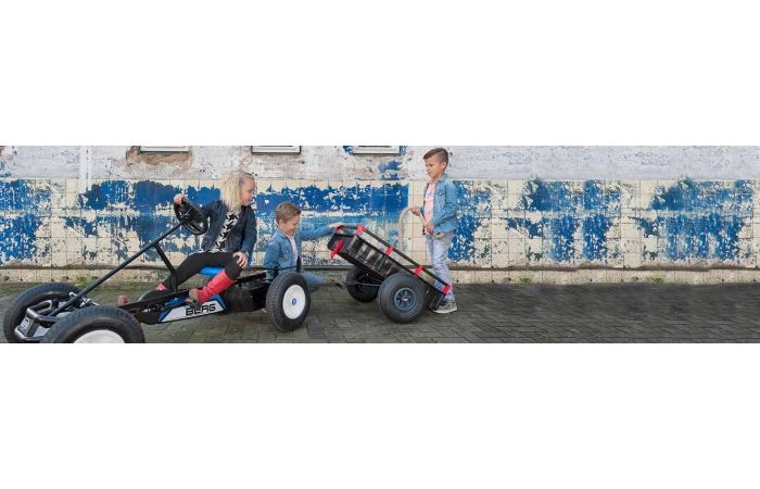 Met deze geweldige aanhanger neem je makkelijk al je spullen mee op skelteravontuur! Of je nu een picknickmand meeneemt voor je vriendjes of oude kranten verzamelt in de buurt; met jouw BERG skelter en BERG aanhanger kun je alles aan. De BERG Trailer XL heeft zelfs een kiepfunctie, waardoor elke klus makkelijk wordt gemaakt! Waar wacht je nog op? Het is tijd om op avontuur te gaan! Er mag tot maximaal 40 kg in de trailer. Deze BERG Trailer XL is geschikt voor alle grote skelters van BERG (BFR, BFR-3, XXL-BFR en E-BFR) en op elk terrein. Kortom, ontdek de wereld op je skelter en gooi je tent, picknickmand of speelgoed eenvoudig in deze aanhanger.