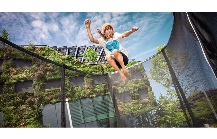 De BERG Champion ECO trampoline is ’s werelds eerste volledig circulaire trampoline. Dat maakt de BERG Champion ECO een bewuste en verstandige keuze. Naast het feit dat de materialen van de trampoline ontzettend lang meegaan, kunnen ze na de levensloop van de trampoline gemakkelijk worden hergebruikt. Dat is wel zo duurzaam.