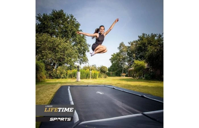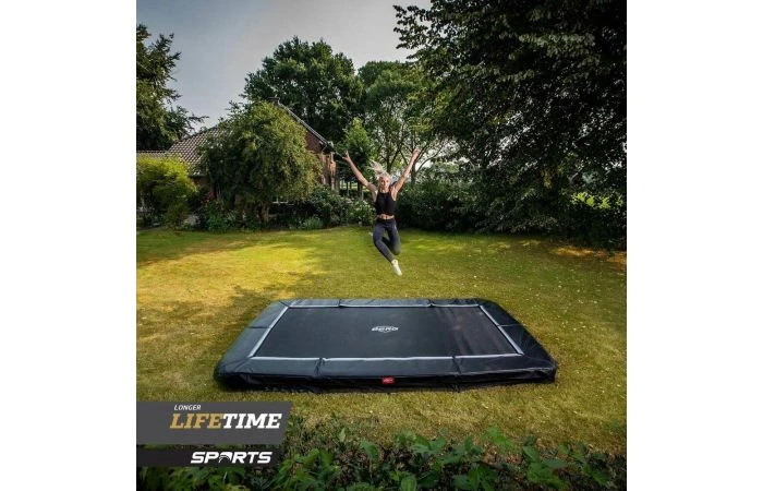 De BERG InGround Sports trampoline is echt bedoeld als een sporttoestel, om balans & lichaamscontrole te trainen en fitheid te verbeteren. De ingegraven trampoline zonder net (sports) is weggewerkt in je tuin. Door de lage opstap van 20 centimeter is de trampoline makkelijk en veilig te betreden.