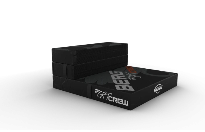 De BERG Spotting Mat is speciaal voor buitengebruik ontwikkeld. Oefen jouw nieuwe tricks en blijf jezelf ontwikkelen op een veilige manier. Door op het juiste moment de mat onder jouw sprong te schuiven wordt een veilige val gewaarborgd. De Spotting Mat heeft een uitstekende demping. In samenwerking met de GRT-crew en Freestyle Trampoline Association heeft BERG twee spotting matten ontwikkeld: standaard maat en XL-formaat. De spotting mat is geschikt voor jumpers vanaf 14 jaar.